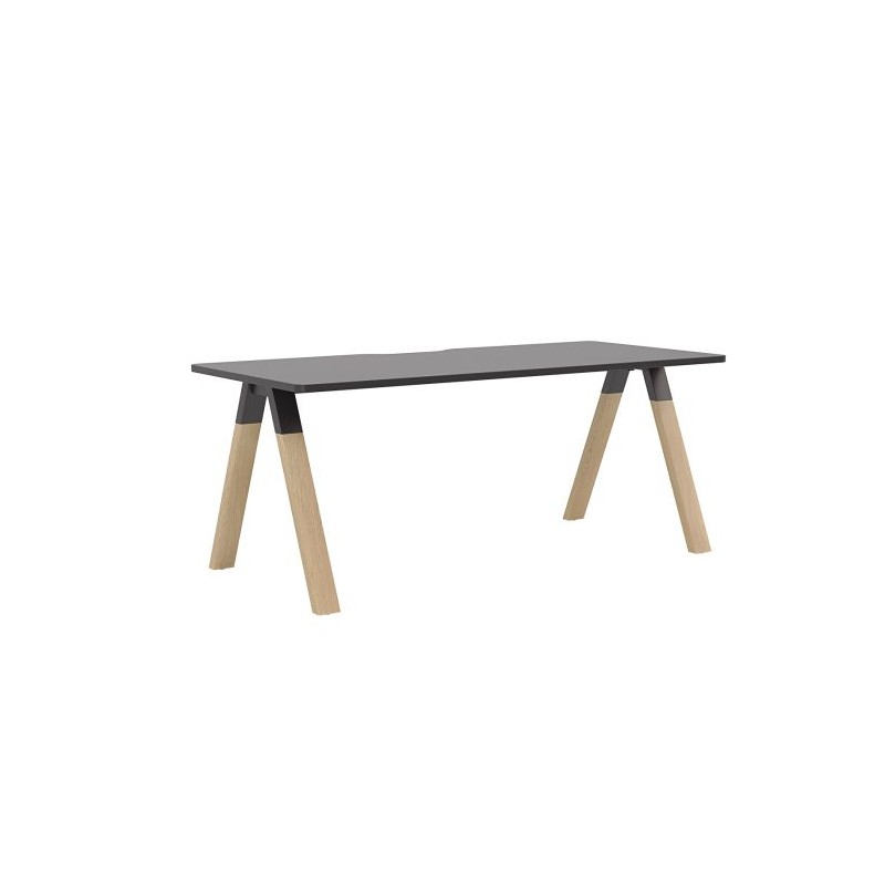 The Ligna desk features sturdy solid oak legs and sleek black powdercoated connectors and rails, it supports a 25mm thick worktop.