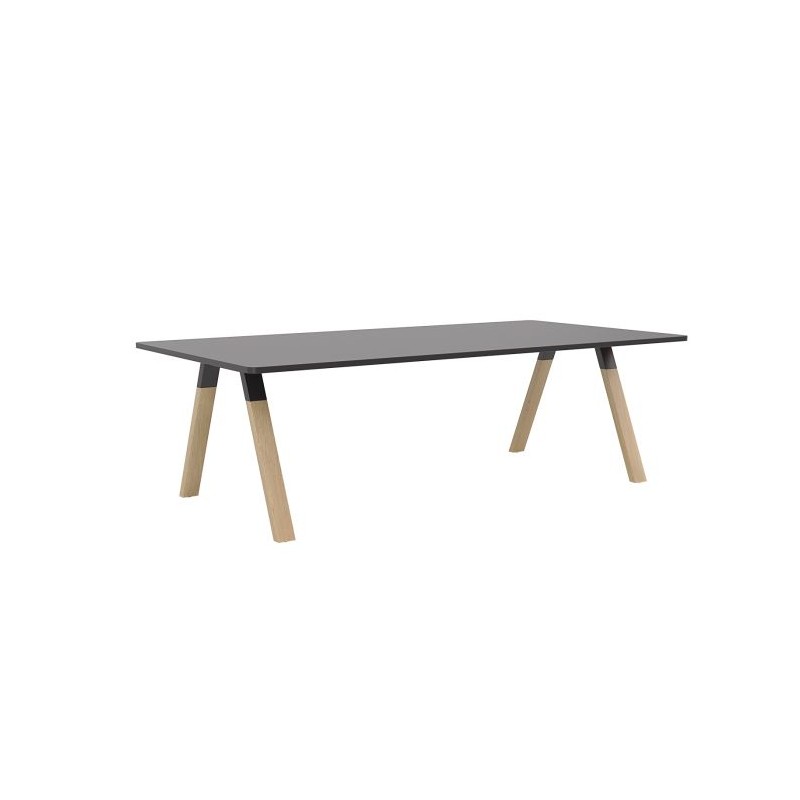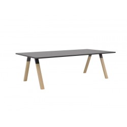 The Ligna boardroom table features sturdy solid oak legs and sleek black powdercoated connectors and rails, it supports a 2400x1200mm, 25mm thick worktop.