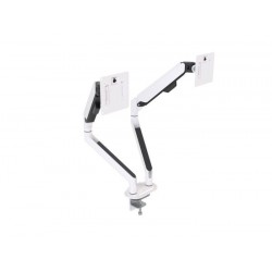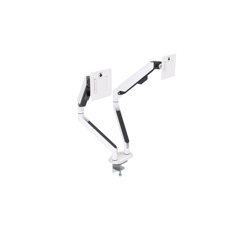 • Desk-mount monitor arm for single or dual screens, finished in black or white powdercoat.