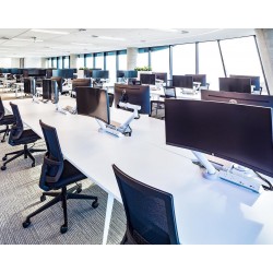 Athena comes with 2 x desk clamps to secure the power rail to back edge of desktop.