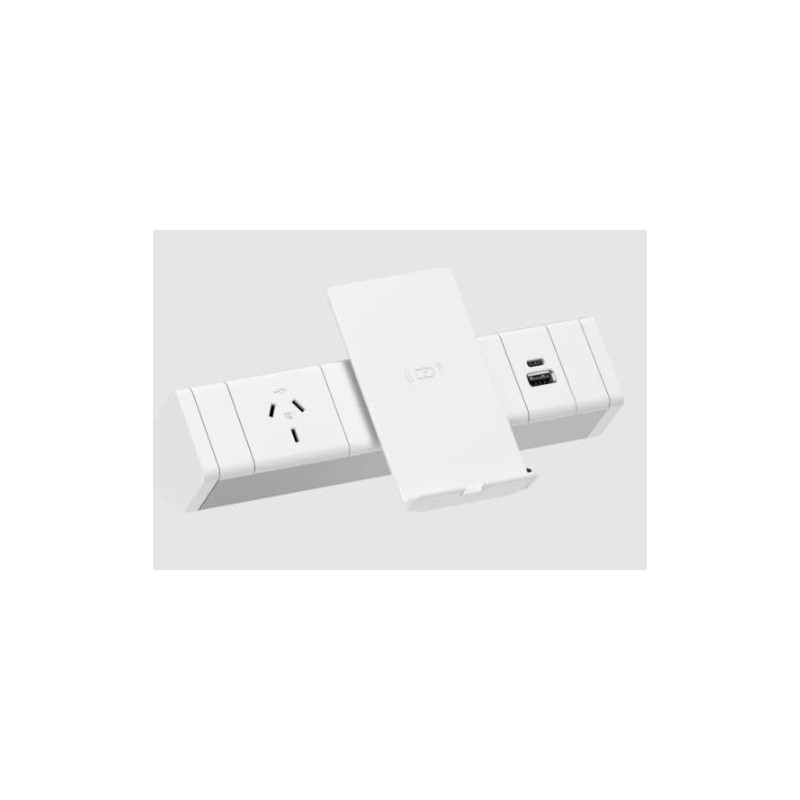 1 GPO, Helistand 15W Wireless Charger, 1x Inline USB-A/C PD Fast-Charge Module With 1100mm Passthrough Lead (Black Only) (100W Shared), 1000mm Tag Lead From Rail,1000mm TAG Lead From 100W Power Supply, L3D Splitter & Desk Clamps