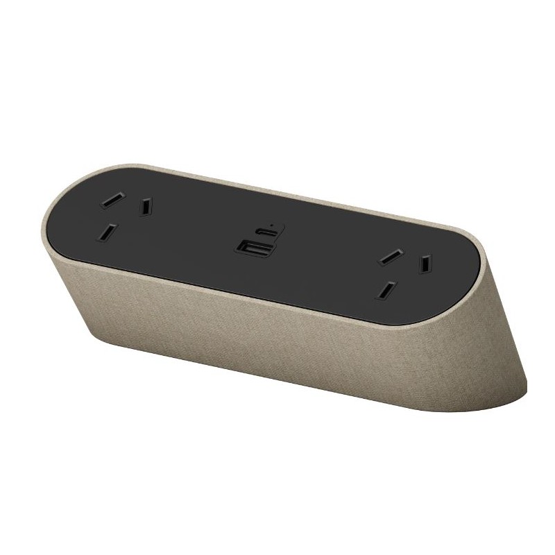 2x GPO, USB A/C PD Fast-Charge Module (30W Shared), 1000mm TAG Lead With L3D Splitter - Black Gloss Fascia With Fabric Wrap