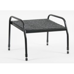 Metal frame with ribbed commercial grade Decor carpet tiles on tread surfaces.