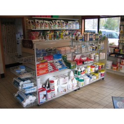 - Economy Display Gondola with/ without end panels on a panel plinth base with lockable castors.