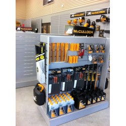 - Elegant double sided Display Gondolas on a 150mm high plinth with lockable castors.