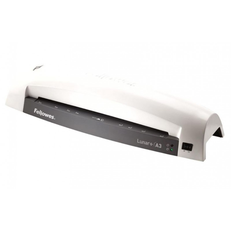Get creative with the Fellowes Lunar A3 home laminator. Visual LED light indicators signal when ready to laminate for user-friendly, easy laminating. Ready to laminate in 4 minutes. Laminates up to A3 size documents in 80-125 micron pouches. Comes with a handy release mechanism for retrieving and realigning misfed documents. Laminating speed of 30cm per minute. Includes 10 pouch starter kit. 1 year machine warranty.