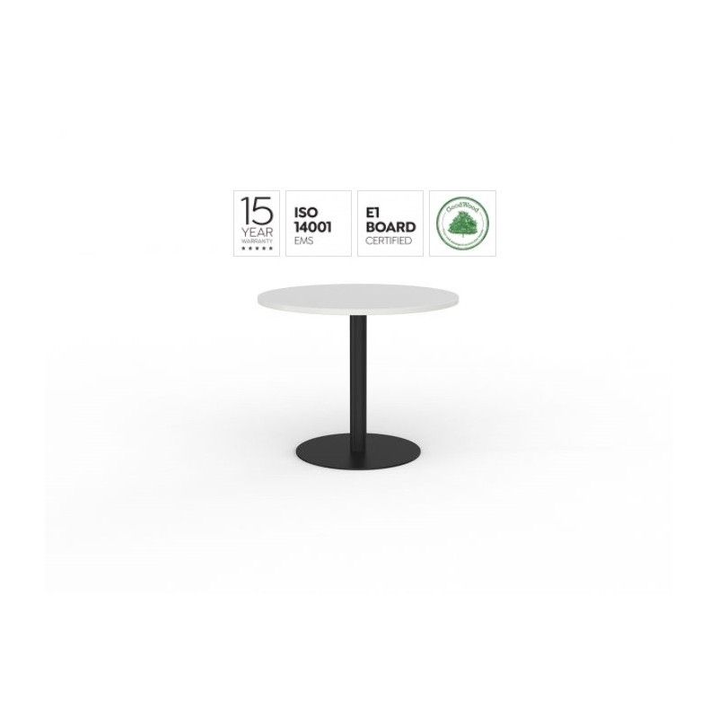 • 900mm and 1200mm round Polo meeting table, with black powdercoat base.