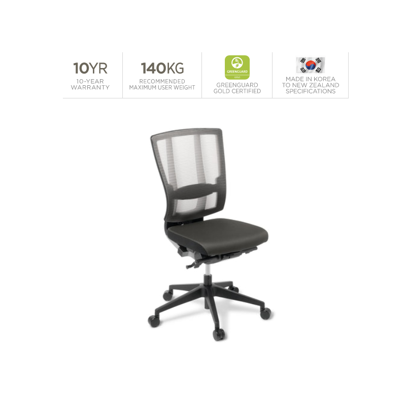 Features a elegant opaque mesh backrest and modern charcoal finishing