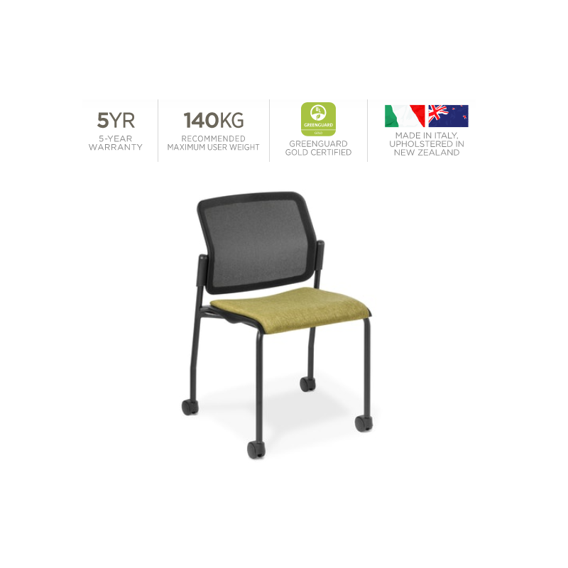 - A heavy duty meeting chair featuring a mesh backrest with strongly supportive lumbar