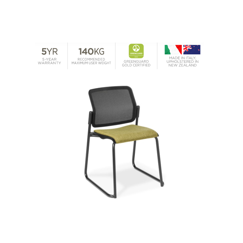 - A heavy duty meeting chair featuring a mesh backrest with strongly supportive lumbar