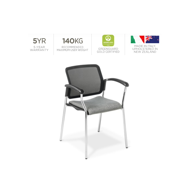 - A heavy duty meeting chair featuring a mesh backrest with strongly supportive lumbar